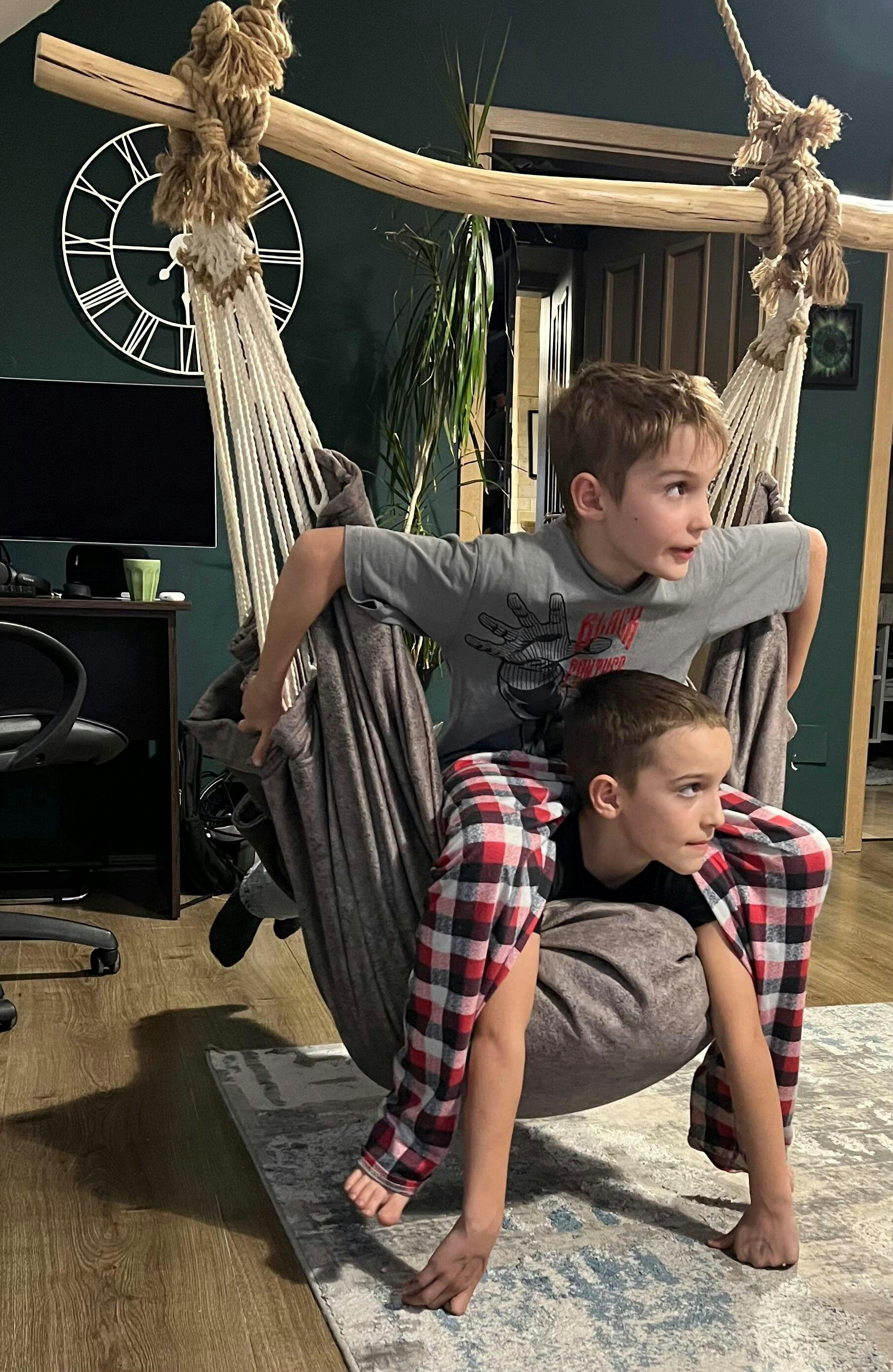 Assembly is simple and secure. The chair attaches to the ceiling, beam or the dedicated HANGarOund support using the included mounting system. All you have to do is attach the carabiner, adjust the height and make sure the attachment point is solid.